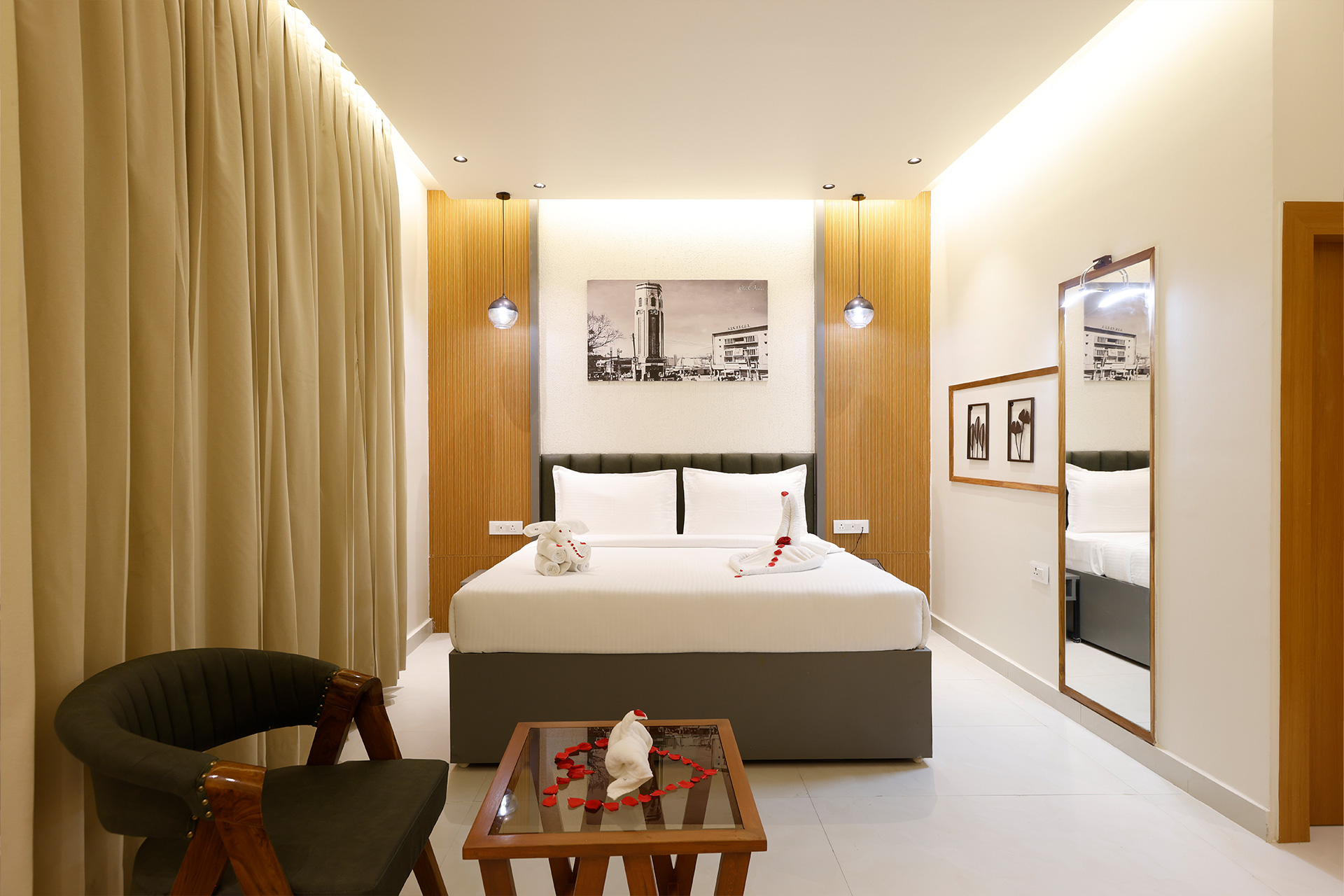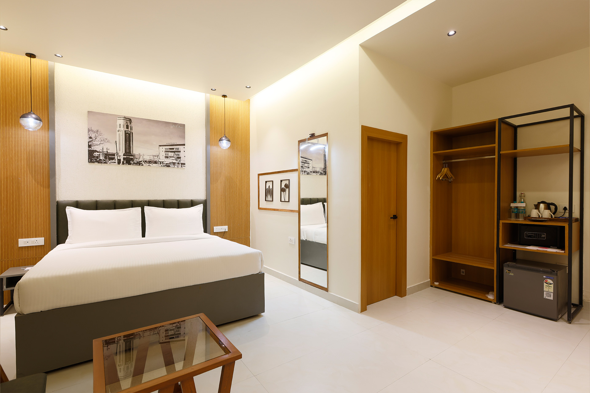 The Executive Room (265 sq ft) offers an affordable yet comfortable stay for 1-2 people. This cozy room is equipped with all essential amenities, including complimentary breakfast, Wi-Fi, a safety locker, LED TV, and a minibar, providing great value and convenience for both business and leisure guests.