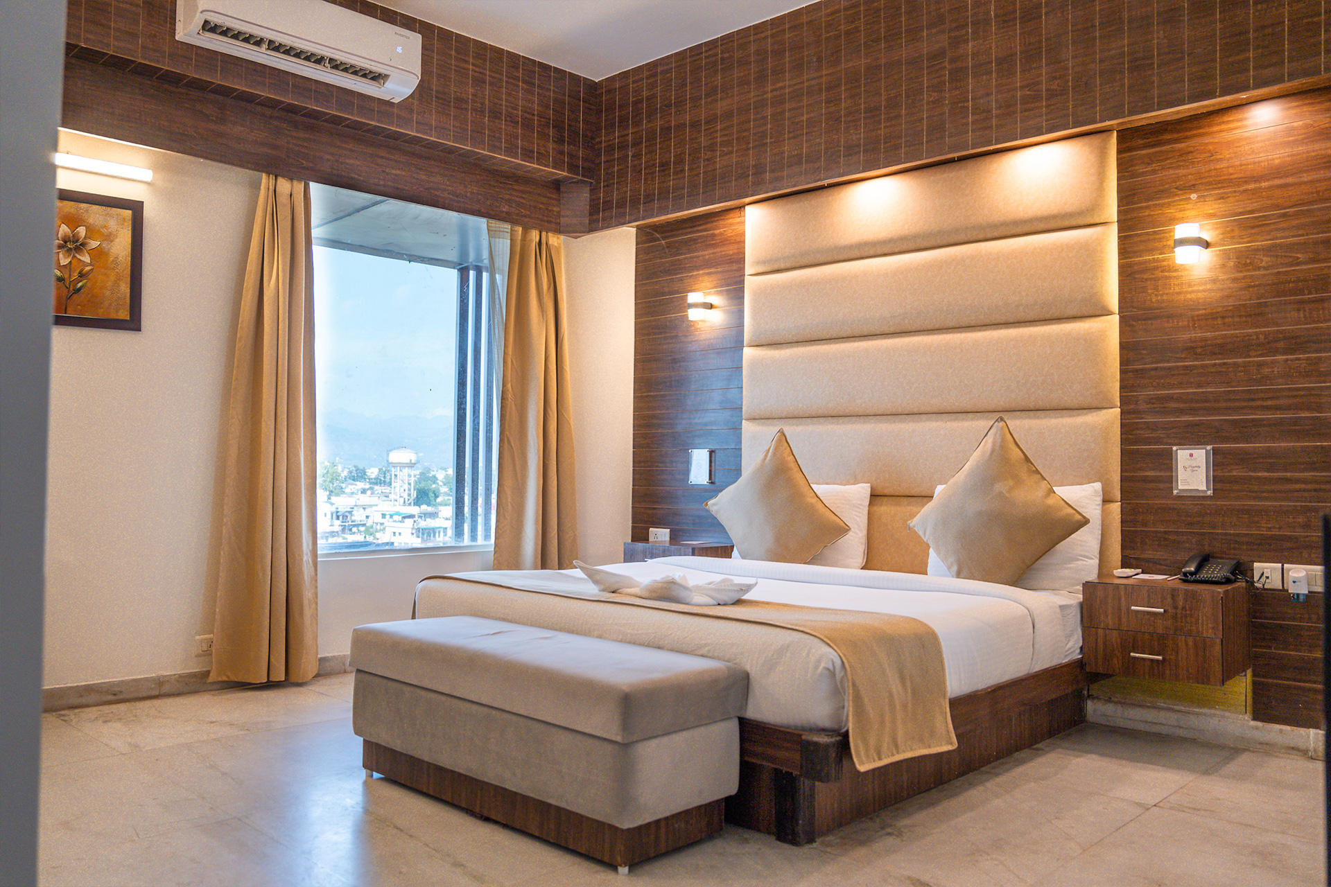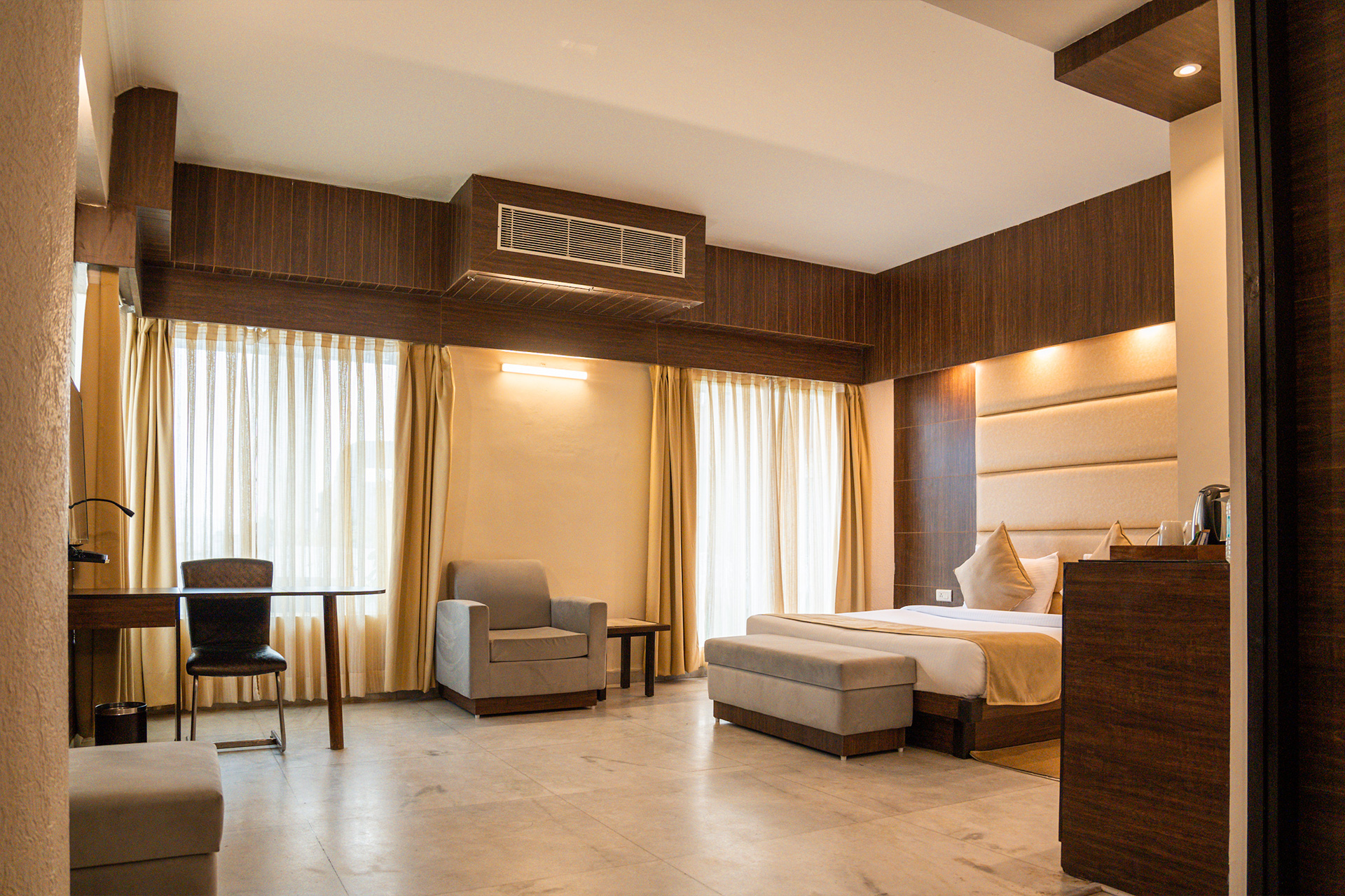 Tailored for 1-2 guests, this elegant room features spacious interiors and modern amenities, offering the perfect blend of comfort and style. Designed to meet the needs of avid travelers, it includes high-speed Wi-Fi, a safety locker, LED TV, minibar, and a complimentary breakfast to enhance your premium stay experience.