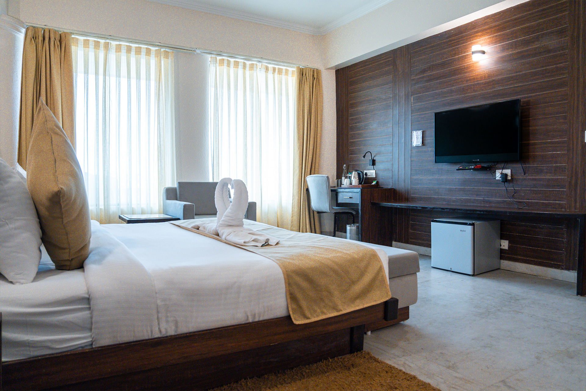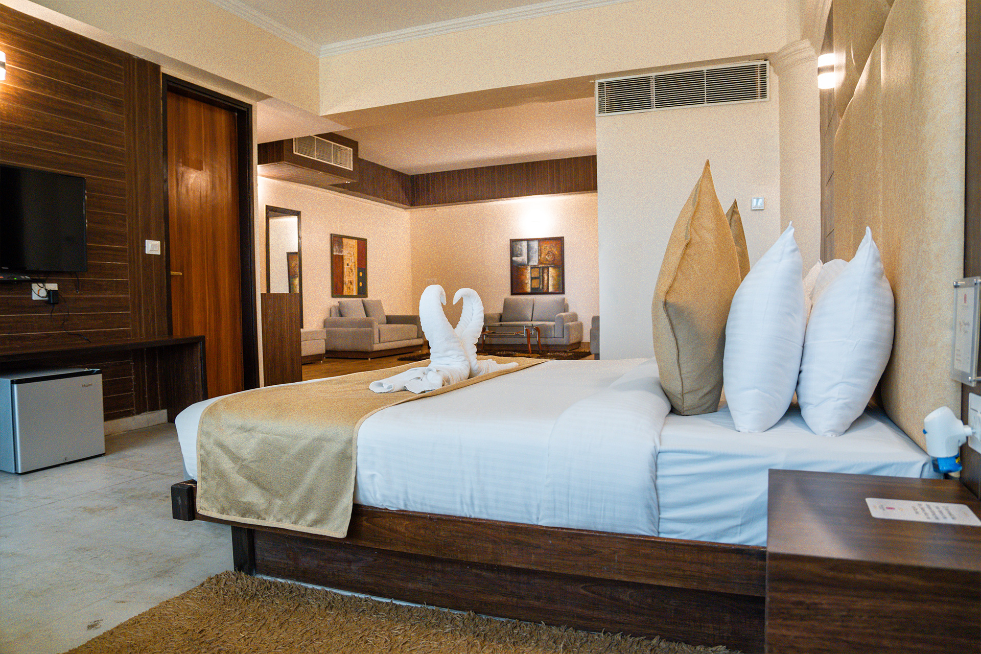 Designed for 2 guests, the Platinum Suite offers unmatched luxury with a spacious living room and a lavish bathroom featuring a jacuzzi. Enjoy elegant interiors, ample space, and premium comfort for a truly extraordinary stay.