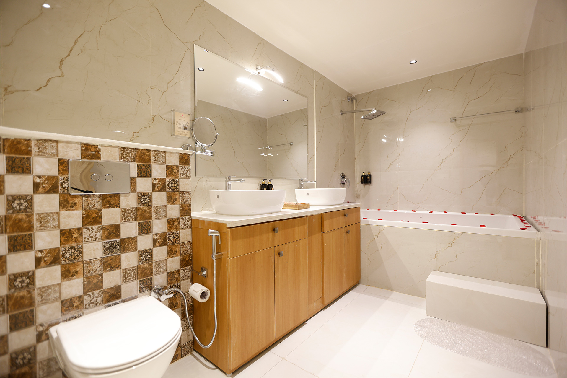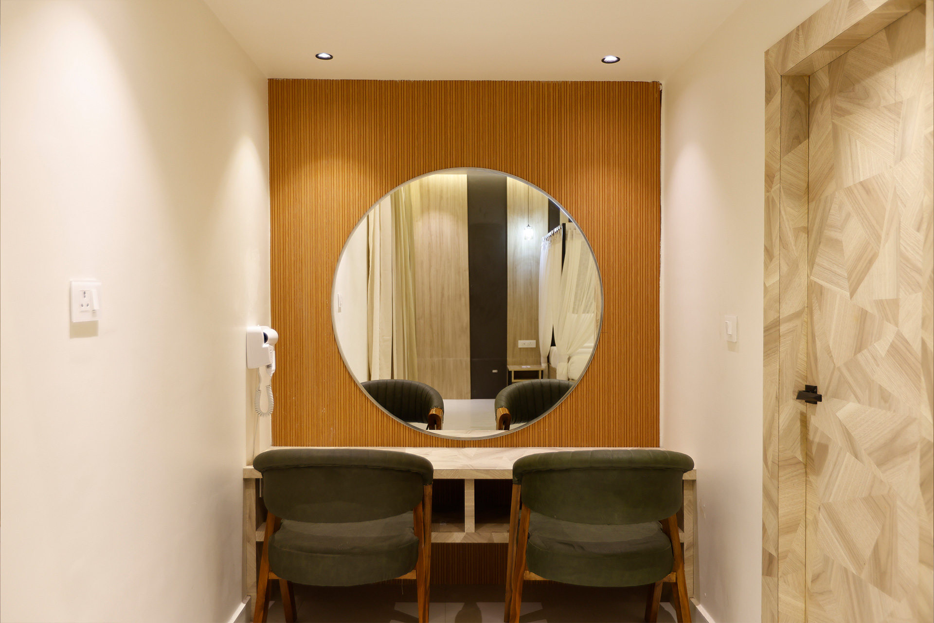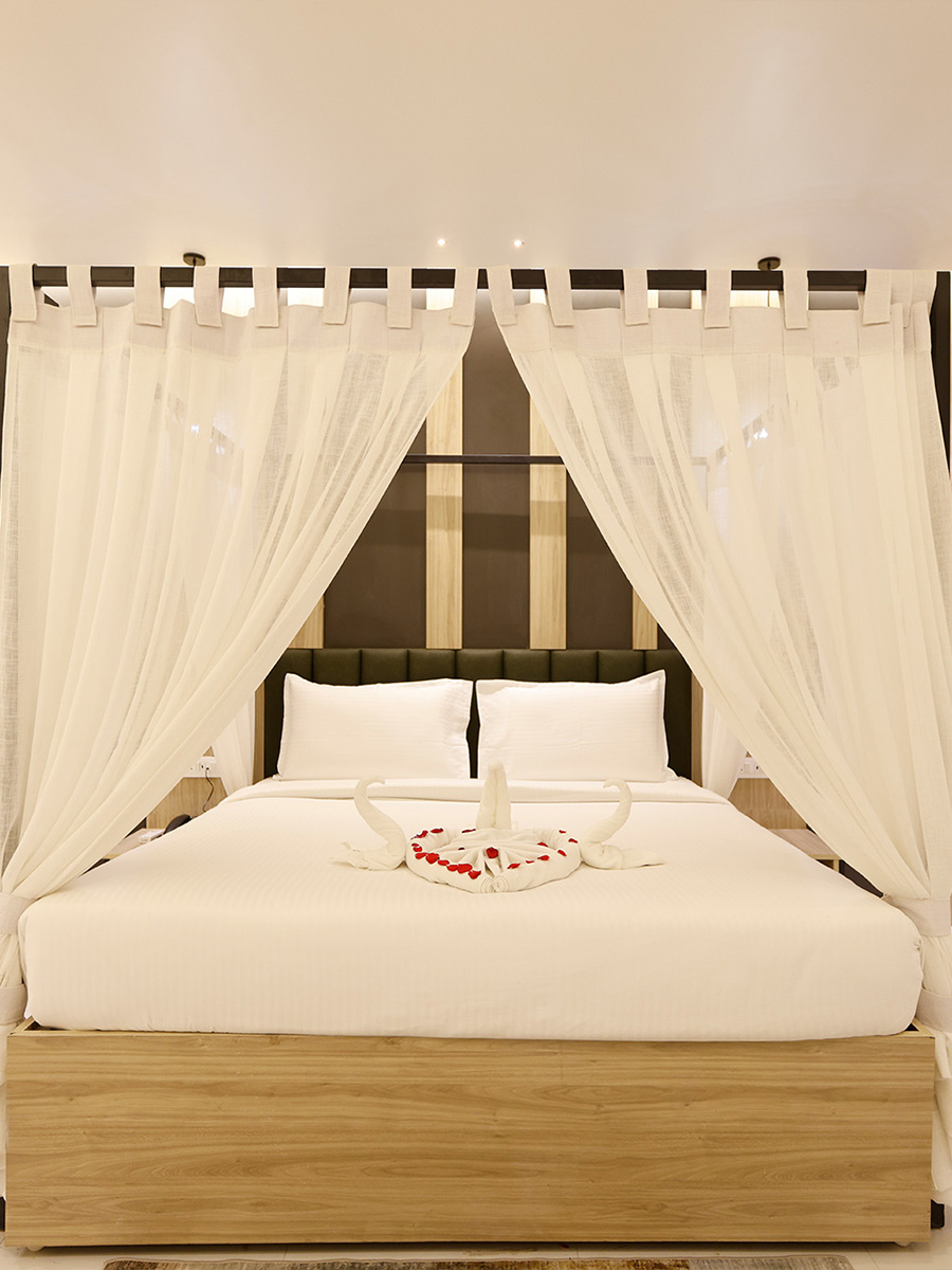 Tailored for upto 3 guests, the Sapphire Suite exudes luxury with an attached living room, a spacious bathroom featuring a bathtub, and a separate dressing area. Perfectly designed for comfort and elegance, it offers a premium stay experience.